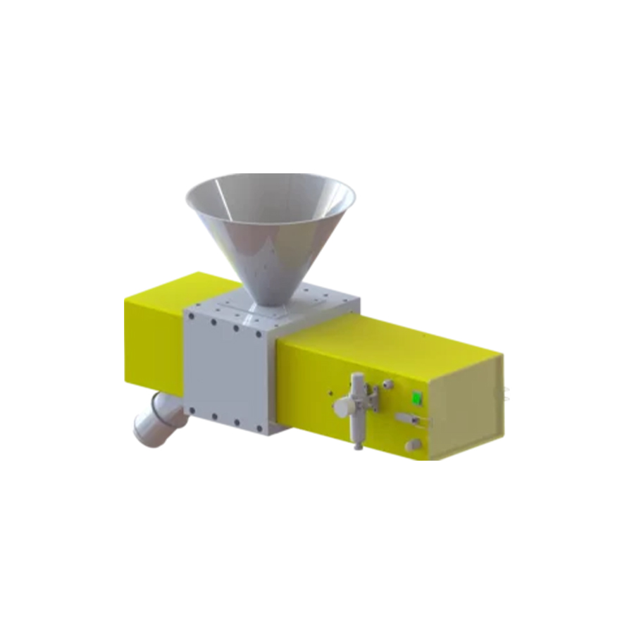 Metallic impurities are discharged to the side together with a small amount of good material. A sluice plate blocks the material feed for this time. Due to the very fast material ejection, extruders can also be monitored without them ‘running empty’.